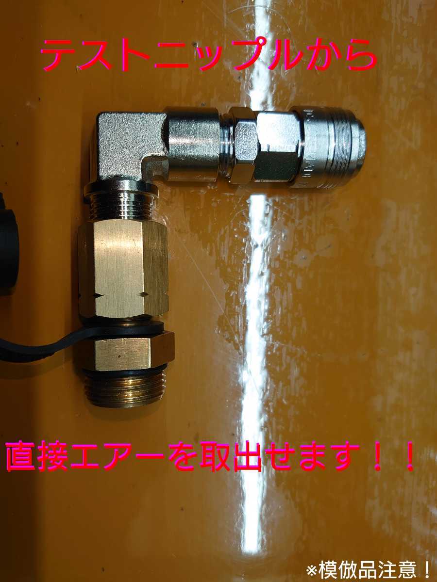 今回のフルオリジナルアダプターはテストニップルに直接取り付けるタイプとなりますので従来の様な交換作業も必要ありません!(ご注意!!17スーパーグレート・17クオン・現行ボルボ・現行スカニアはエアー圧が12~13kg/cm2以上と高圧の為、エアーダスター以外のエアーパーツ(エアーホーン・キシューンバルブ等)をご使用の際は別途減圧弁が必要となります。その際は当方別途出品中の減圧弁セットをご使用下さい。もし分からない場合は質問欄よりお問い合わせ下さい。)